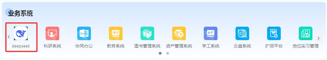 目前,我校已经完成DeepSeek—R1模型部署工作。校内师生可以登录统一身份认证系统进入智慧校园门户首页业务系统进行试用。也可以通过业务系统的添加按钮进行应用添加,手机端用户通过学校官方公众号智慧校园工作应用进入。